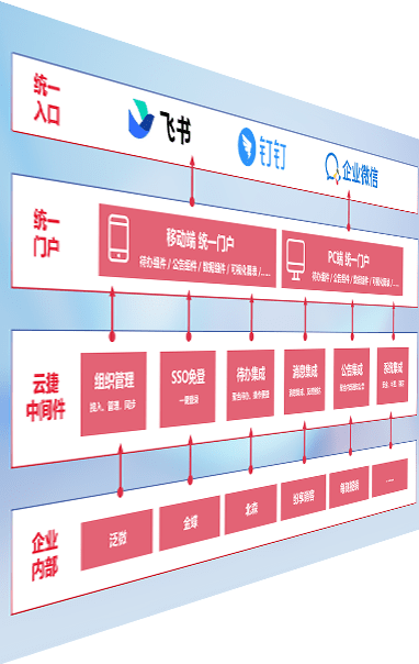 对协作平台提供支持服务,,支持企业应用与协作平台对接,,包含组织同步、、、、消息集成、、、待办集成等。。。支持目前主流的协作平台:钉钉、、、、企微和飞书。。。